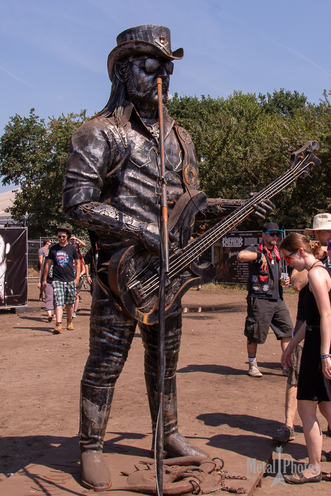 On August 2, 2023, Lemmy Killmister’s ashes are enshrined at Lemmy’s bar in the Village of Wacken, where many fans took a part in a special parade and a ceremony with communal toasts. The longtime Motörhead members Phil Campbell and Mikkey Dee participated in the ceremony, and they placed the Lemmy’s ashes in a small version of his urn inside a special glass display with his hat, his boots and his favourite things as books, whiskey, newspapers and even Kinder Eggs, and the entire building was decorated with Motörhead-themed wall paintings.