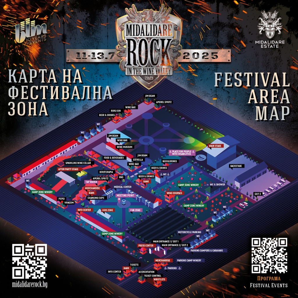 Midalidare Rock 2025 already opened the festival site. Today is the last day for buying tickets – only until 23:59. After that the tickets will be only at the festival site on Friday, Saturday, and Sunday from 11:30 to 23:30. The one day tickets for Manowar were sold out yesterday. The organizers are warning the visitors to wear earplugs because the band is planning to make its most powerful return in Bulgaria with the most mightiest sound ever. It is known that Manowar canceled their concert at Hellfest 2022 because the organizer did not give them the opportunity to use a powerful enough sound.