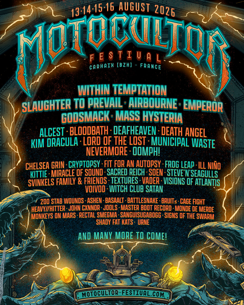 New bands participated in the schedule of the French festival for metal music, Motocultor Open Air, in Carhaix, France. Alcest, Basaalt, Bloodbath, Bruit≤, Cage Fight, Emperor, Ill Nino, John Cxnnor, Mass Hysteria, Miracle of Sound, Monde De Merde, Nevermore, Sacred Reich, Shady Fat Kats, Svinkels, Family & Friends, Urne, and Visions of Atlantis are the new names in the lineup for 2026.