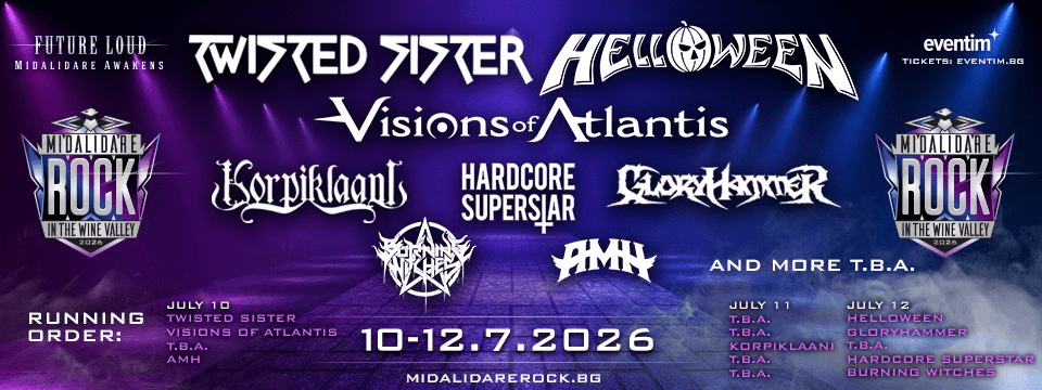 The Bulgarian festival for rock and metal music Midalidare Rock In The Wine Valley announced new names for its sixth edition. The international symphonic power metal band Visions of Atlantis will play on the first day before Twisted Sister. Joining the same day’s program is the American rock group AMH (Adam and the Metal Hawks), whose vocalist Adam Ezegelian is known as a finalist from the television show “American Idol.”