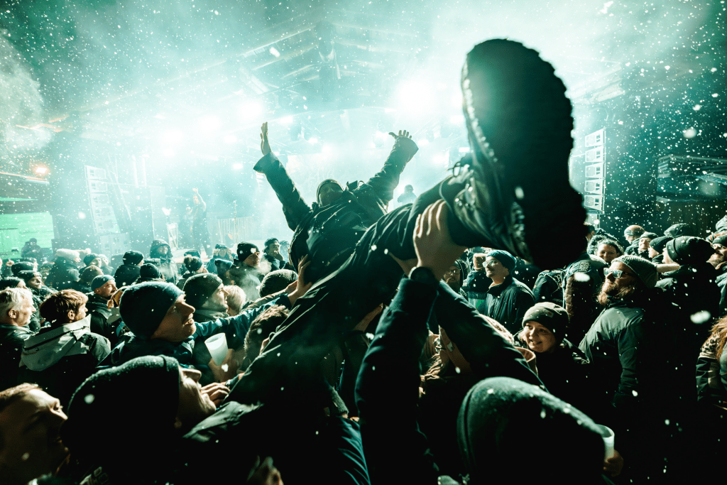 Thursday brings a sudden return of winter: the Alm program is moved to the Europahaus at short notice—but the good vibes remain. Reis Against The Spülmachine turn the foyer into a boiling “Hexenkessel”. Despite the snowfall, the Waldfestplatz is still filled with happy faces, as Donots, Turbobier, Emil Bulls, and Paleface Swiss deliver legendary shows.