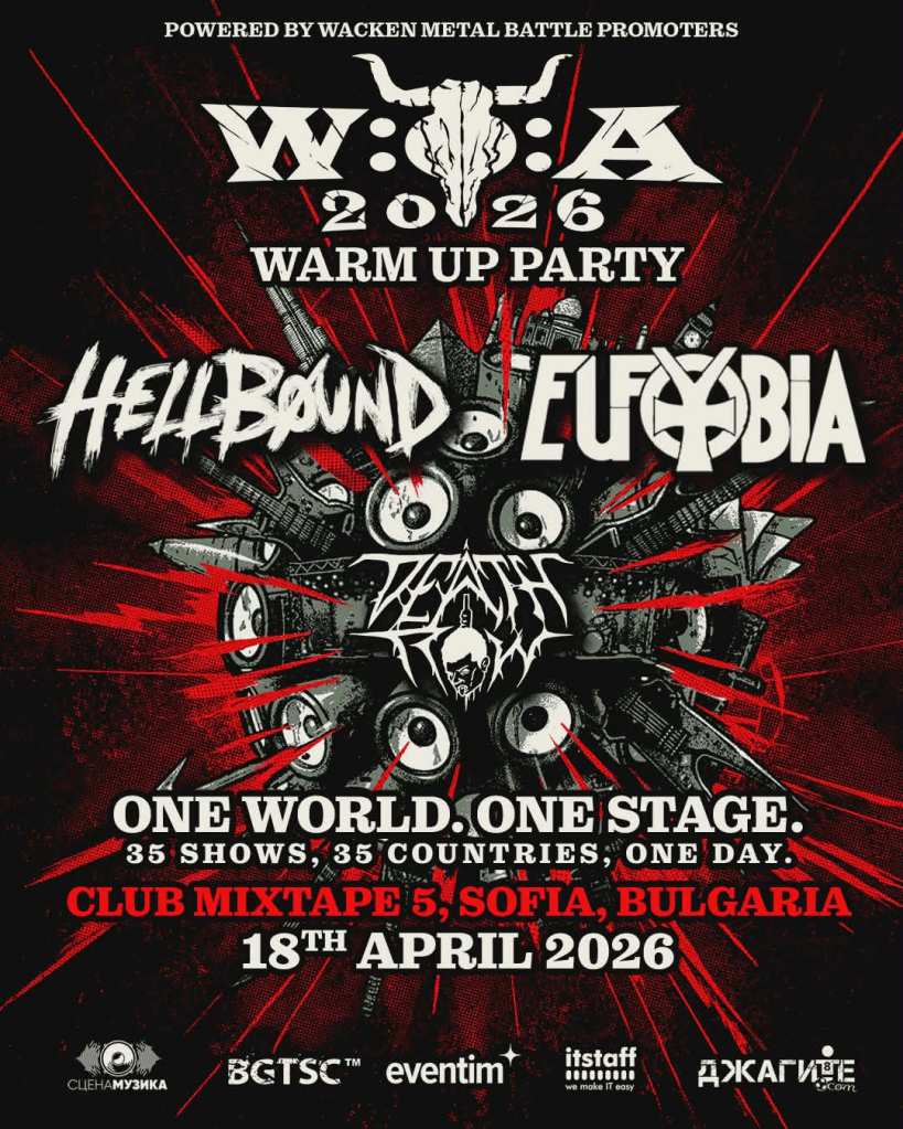 On April 18th, 35 countries will participate in the Wacken Open Air 2026’s Warm-Up Party. In 35 countries at the same time there will be warm-up concerts. This event is the first of its kind in heavy metal history. In Sofia, Bulgaria, the bands Eufobia, Hellbound and Death Row will perform.